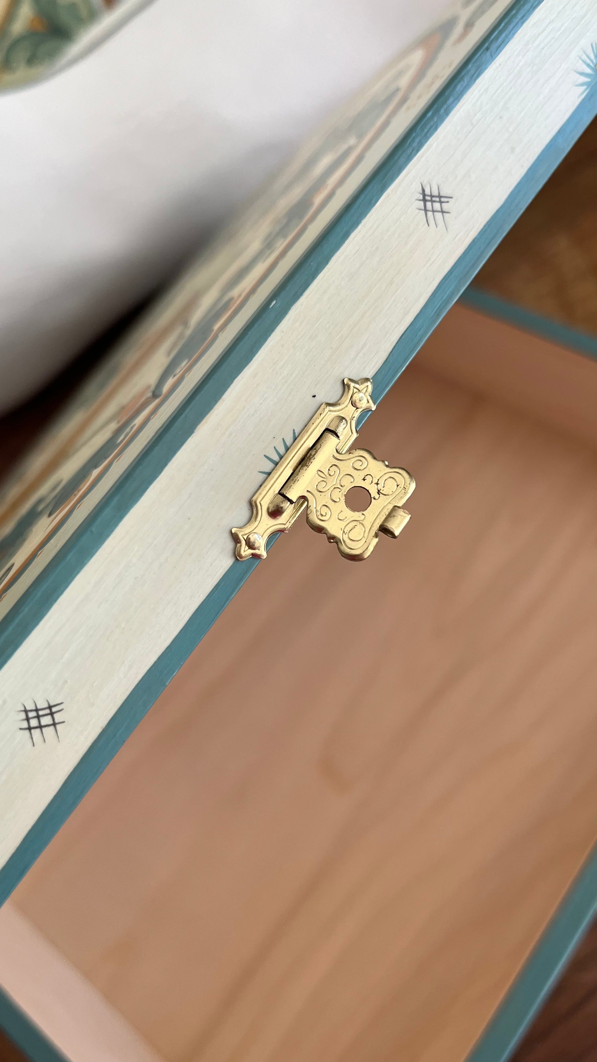 A wooden box with Boretsk hand-painting - one of the varieties of Northern Russian folk paintings.