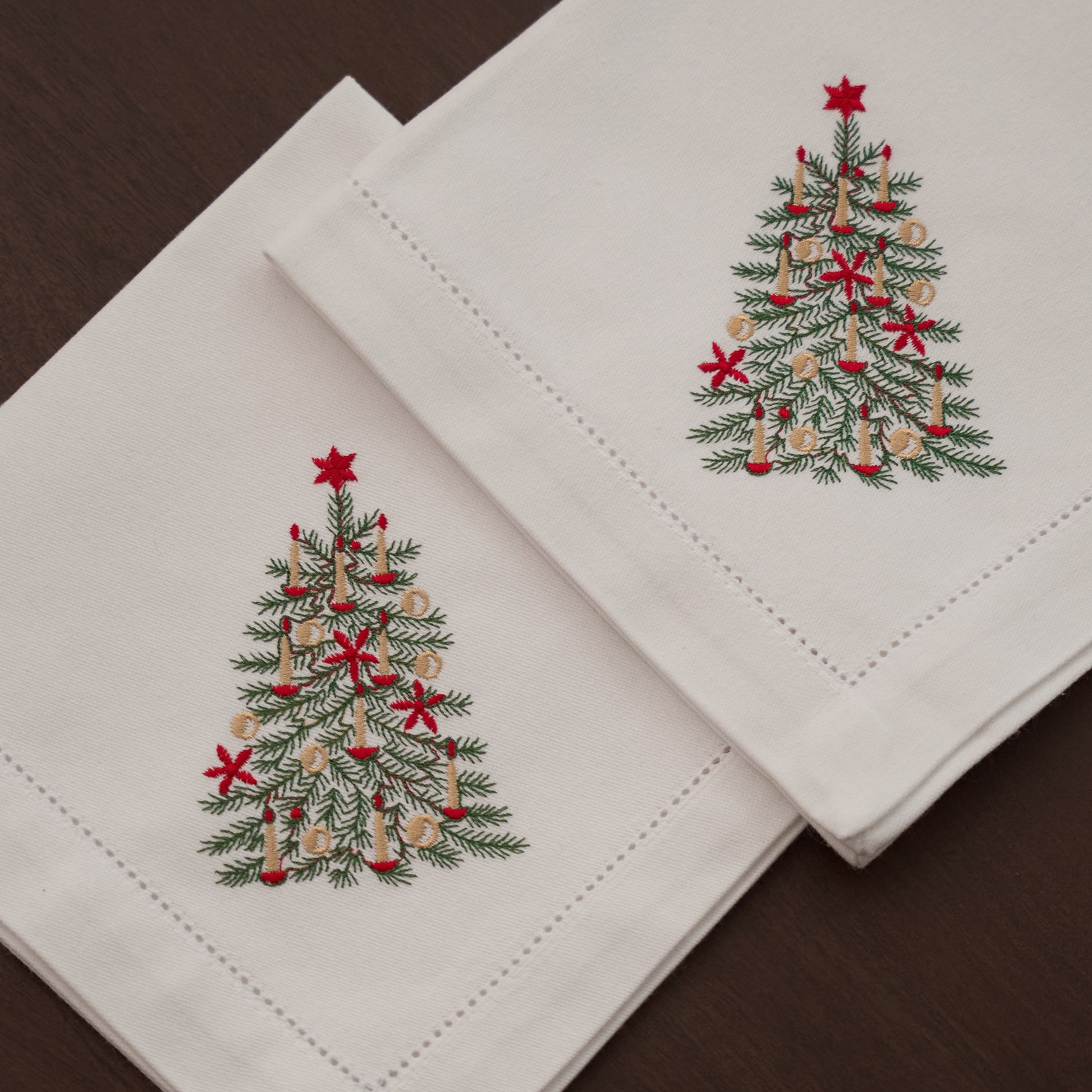 Handmade linen/cotton napkin decorated with Christmas tree embroidered pattern (43х43 cm)